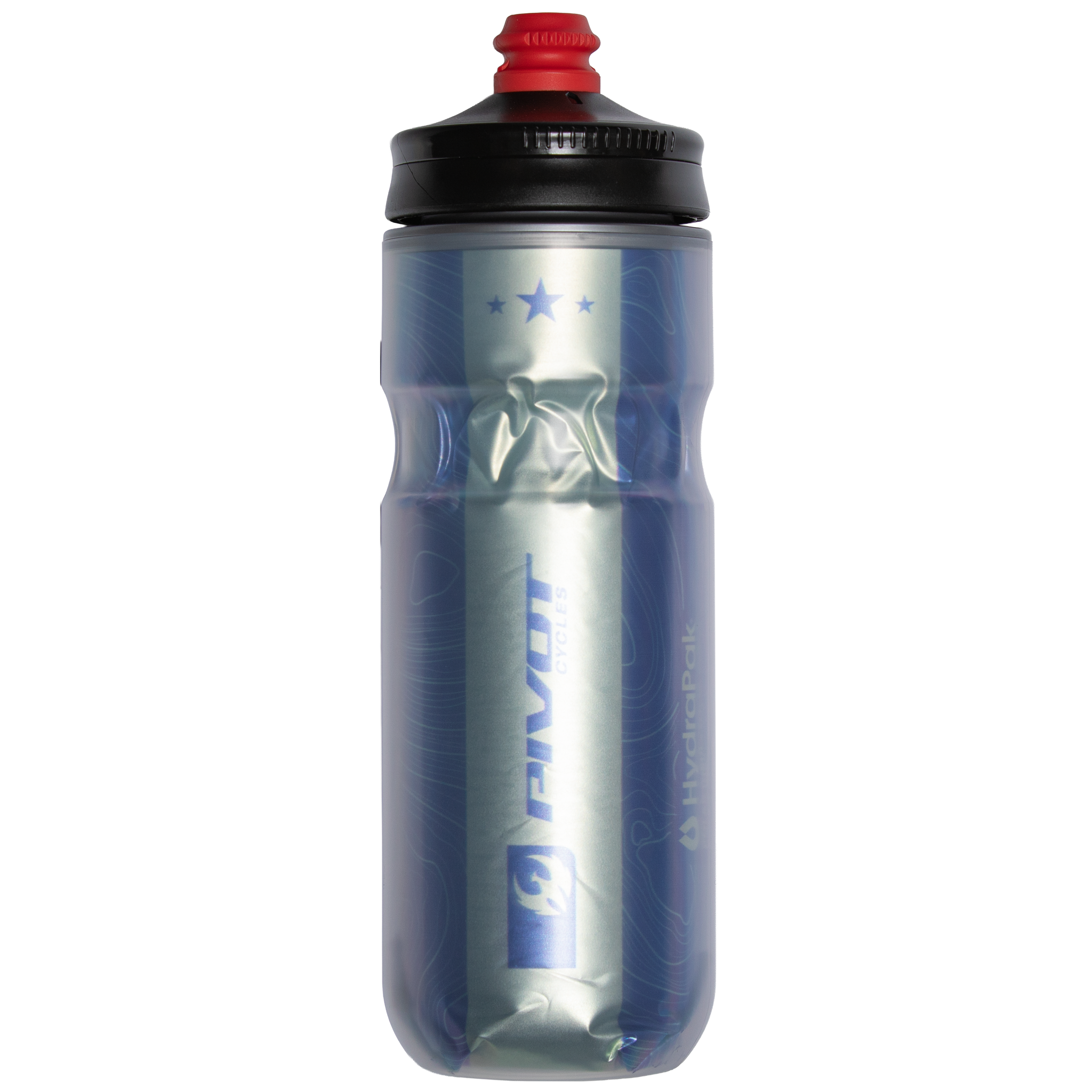 The Pivot Cycles Topography Insulated Bottle: rigorously tested in the unforgiving Sonoran Desert, this 100% BPA-free bottle ensures your hydration stays cool in the hottest conditions. With Tri-Layer Insulation technology, it keeps your drinks refreshingly cold throughout your ride. Its unique grip groove and wall design make hydration effortless with a simple squeeze, perfect for any cycling adventure.